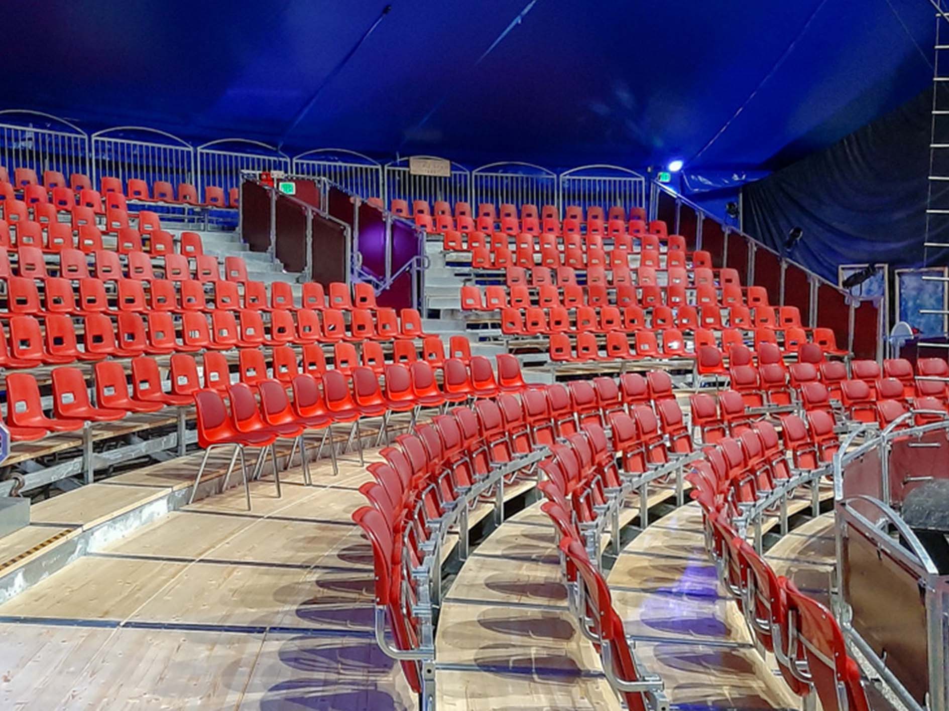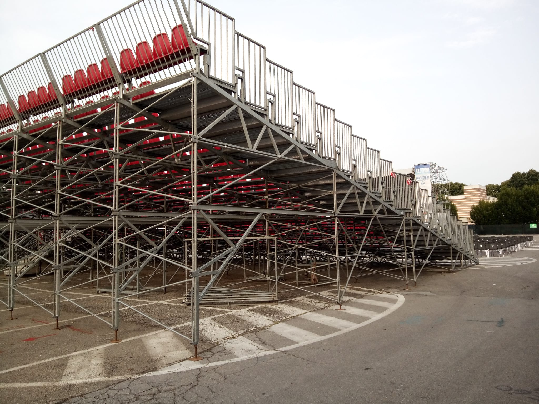 Tememos en alquiler gradas, sillas, carpas, estructuras, escenarios, palcos, Layher, vallado exterior, taquillas, baños, calefacciones, generadores y cuadros eléctricos, iluminación exterior y todo lo que su evento pueda necesitar.